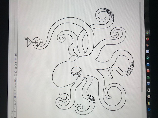 I drew some of the designs on the computer and then transferred them to the wood frame. The octopus celebrates a stunning sunset with a flashy dichroic martini glass.