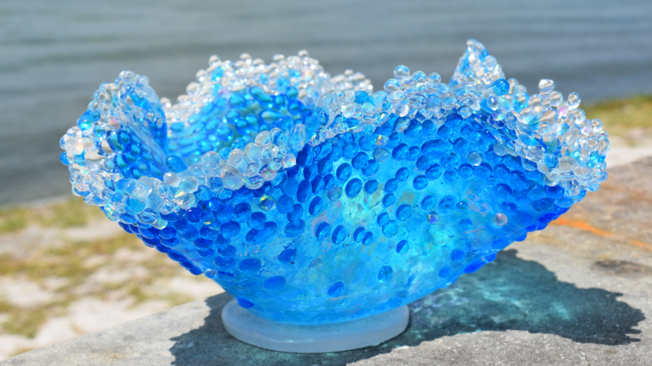 The term creative slumping has a broad range of potential directions. Isn’t that awesome! We have a huge array of handling techniques to feed our ever curious artistic spirit, and challenge our glass crafting skills. For me, creative slumping means taking ready-made molds and using them in ways that result in extraordinarily unique 3-dimensional forms. The great thing about this approach is that super simple ideas applied in combination often make the most exciting pieces of art.